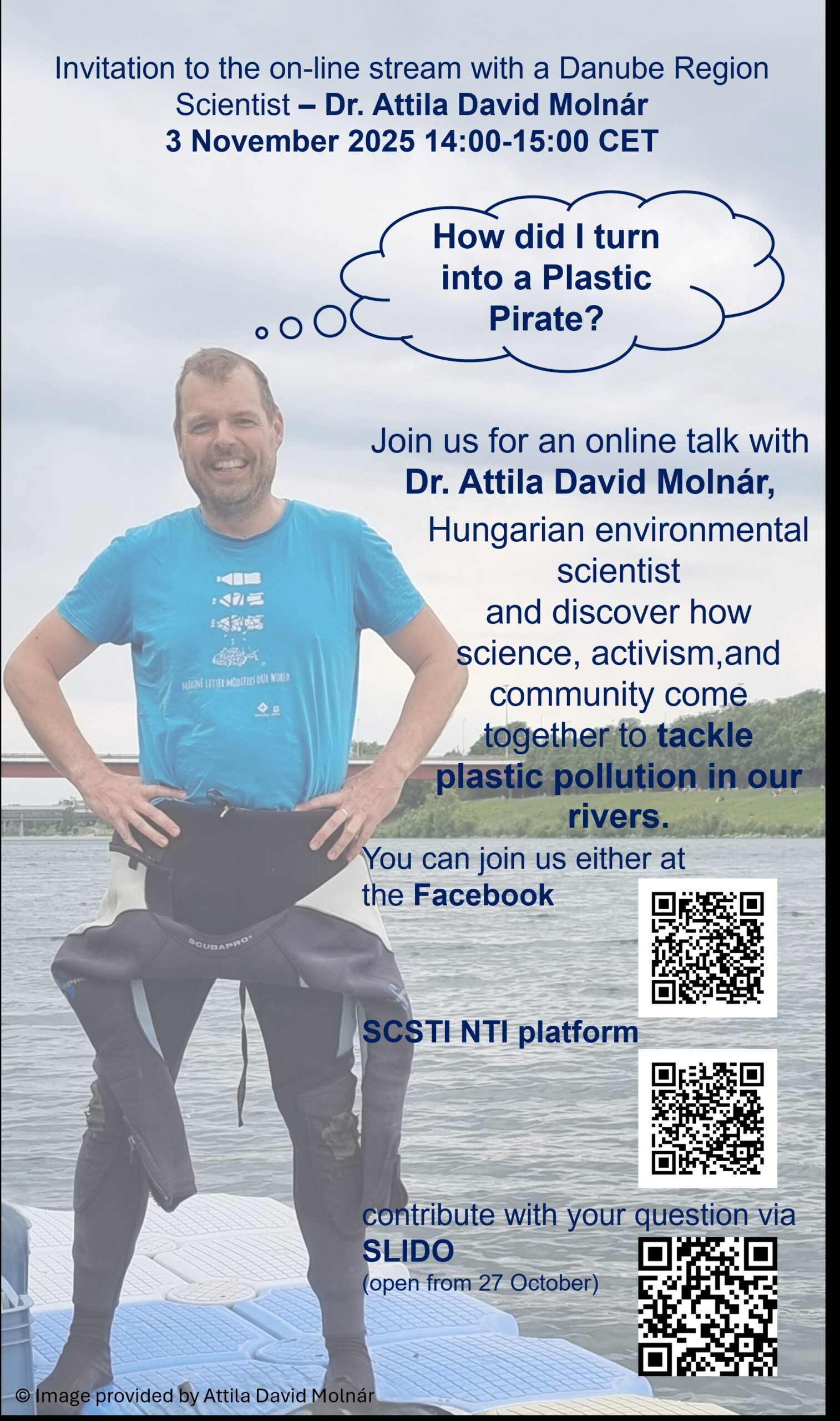 EUSDR PA7 & EUSDR PA 4 invite you to join the live stream with a renowned Danube Region Scientist – Dr. Attila David Molnár. The event will take place on Monday, 3 November 2025 at 14:00 CET, with a topic: How did I turn into a Plastic Pirate?